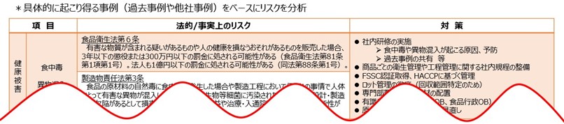 特に、過去の問題事例は、将来の不祥事を予防するための宝の山であり、このような事例検証を通じて、実効的な社内コンプライアンスの構築が可能となります。 松田綜合法律事務所では、このような食品リスクマネジメント体制の構築のお手伝いや社内研修のご提供をさせていただいております。